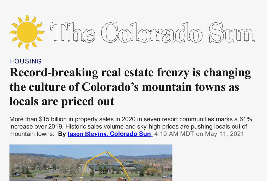 (Read and print full article PDF) Colorado Sun, By Jason Blevins, May 11, 2021 Excerpt from Tim Estin interview: Wealthy urban refugees spending big: The wealthy from big cities such as Chicago, New York, Miami and Dallas are driving some of the biggest shifts. In Eagle County in… Read More