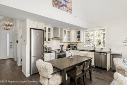 MLS # 191539 – Fifth Ave Condo, Central Core, 800 S Mill Street 6a, Aspen; Sold Price: $5.525M/$5,054 sq ft Furn. Ask Price: $5.525M (Original Price: $5.525M and on the market since 02/02/2026). This is a 1965 built/2020 remodeled, 3 bedroom 3 bath, 1,093 sq ft condo. Tim’s comments: Top-floor corner three-bedroom, three-bath condo with vaulted ceilings, abundant natural light, and views. Updates include renovated kitchen and baths, air conditioning throughout, fireplace, balcony, and two ski lockers. The Fifth Avenue complex offers an outdoor heated pool and hot tub, and the location provides quick ski access to the Aspen Mountain Gondola and proximity to Lift 1A. 2025 Taxes: $10,139.; HOA Dues: $15,380. Under Contract Date: 02/02/2026; Sold Date: 02/02/2026. (Photos courtesy of Christie’s International Real Estate Aspen Snowmass)