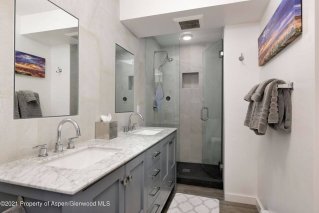MLS #170964 – Aspen Square, Condominium, Central Core, 617 E Cooper Avenue 321, Aspen, CO; Sold Price: $1,079,000/$2,175 sq ft; furnished. Sold Date: 08/03/2021. Ask Price: $1,079,000. (Original Price: $1,079,000 and 39 days on the market since 06/25/2021.) This is a 1969 built and 2013 remodeled, studio/1 bath, 496 sq ft condo. Broker comments are “Enjoy Smuggler, Hunter Creek Valley and Red Mountain views from the private third floor balcony of this Aspen Square fireside studio. Recommended management configuration with newer contemporary furnishings. The upgraded u-shaped kitchen layout includes sold slab black granite counters with 3-seat bar, and stainless appliances. The bathroom features dual vanities, slate flooring, and custom tiled shower with glass enclosure. Newly remodeled contemporary hallways, lobby, exterior and conference room & gym designed by Poss Architecture. Excellent Aspen Square amenities include: full-time front desk, concierge, off-street and garage parking, gym, pool, hot tubs, and fire pit. Aspen’s best location, 60-steps to Silver Queen Gondola Plaza and all of downtown Aspen’s best shops and restaurants.” 2020 taxes: $2,142; HOA Dues: $19,996. City of Aspen RETT Transfer Tax of approx. 1.5% payable by buyer. Under Contract Date: 07/02/2021; Sold Date: 08/03/2021. (Photos and broker comments courtesy of Aspen Snowmass Sotheby’s International Realty-Hyman Mall)