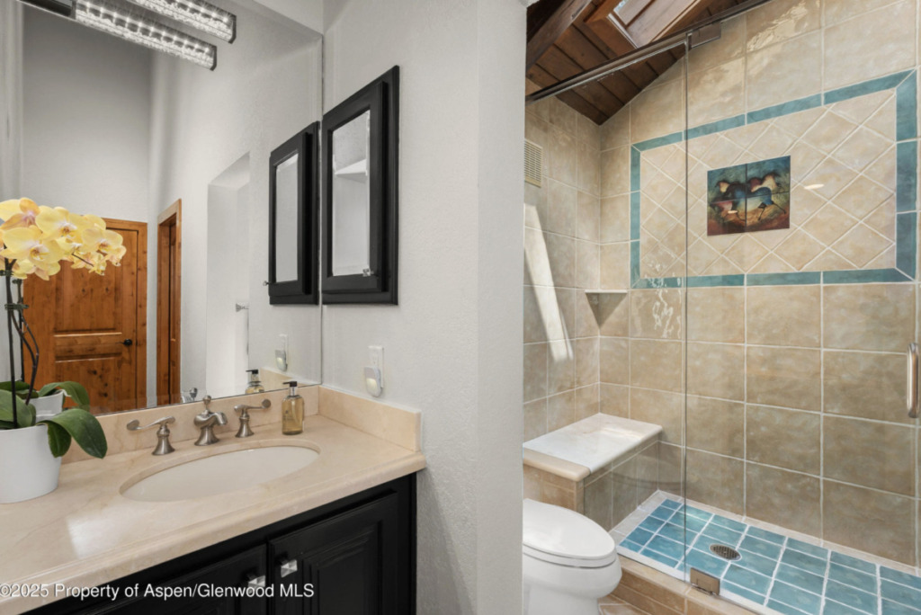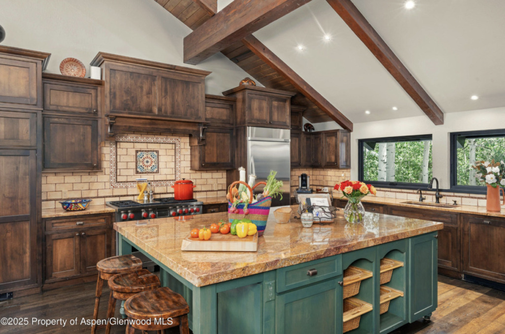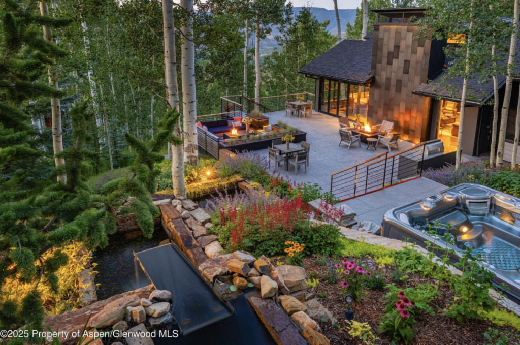 MLS # 189385 – Wood Run, Snowmass Village, 198 Edgewood Lane, Snowmass Village; Sold Price: $8.6M/$2,317 sq ft Furn. Ask Price: $9.475M (Original Price: $9.9M and on the market since 07/22/2025). This is a 1979 built/ 2022 remodeled, 6 bedroom 5 bath, 1 half-bath, 3,711 sq ft single-family home with 2 car garage on a 21,678 sq ft lot, or 0.5 acres. Tim’s comments: Newly renovated mountain home with an open great-room anchored by a chef’s kitchen and infinity glass folding doors to a 1,000 SF outdoor entertaining terrace with a rock waterfall/reflecting pond, spa, firepit seating areas, and mature perennial gardens plus a south-side “Zen” garden corridor with thyme and lavender. Interior highlights: vaulted ceilings with clear story windows, dark finished pine floors, two stone fireplaces (including one in the kitchen), Wolf 6-burner range, wine cooler, custom cabinetry, remote blinds, Sonos (inside and out), and mini-split A/C in the great room and primary suite. Remodel work noted in 2022–2023 (including a new roof). Approx. 75-yard walk to Adams Avenue ski trail. 2025 Taxes: $16,415; HOA Dues: $200. Under Contract Date: 01/02/2026; Sold Date: 02/17/2026. (Photos courtesy of Compass)