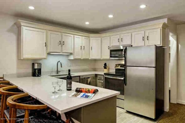 MLS #138035 – North Nell Bldg, Central Core, 555 E Durant Avenue 4D, Aspen, CO: Sold Price: $1,512,500/$1,609 sq ft; furnished; Asking Price: $1,512,500. (Original Price: $1,512,500 and 17 days on the market since 02/24/2015.) This is a 1965 built and 2014 remodeled, 1 bedroom/1 bath, 940 sq ft condo with 1 car garage. The complex is adjacent to the Aspen Mountain Gondola. Broker comments are “Location Location Location It doesn’t get any better than this. This top floor, 940 sf one bedroom, plus Den, has unobstructed views of Ajax mountain. Remodeled in 2014 and complete with underground parking.” 2014 Taxes: $4,272; HOA Dues: $1,345. City of Aspen RETT Transfer Tax of approx. 1.5% payable by buyer. Under Contract Date: 02/27/2015; Sold Date: 03/13/2015. (Photos and broker comments courtesy of Coldwell Banker Mason Morse)