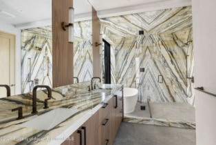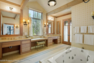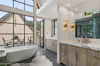 MLS # 189105 – Red Mountain Ranch, Red Mountain, 323 E Reds Road, Aspen; Sold Price: $25M/$5,097 sq ft Furn. Ask Price: $28.9M (Original Price: $28.9M and on the market since 07/08/2025). This is a 1975 built/2025 remodeled, 5 bedroom 5 bath, 1 half-bath, 4,904 sq ft single-family home with 2 car garage on a 31,926 sq ft lot, or 0.73 acres. Tim’s comments: Luxury remodeled Aspen home on a ¾-acre lot in the private, exclusive Red Mountain Ranch neighbrohood – past homesite locations of two of Aspen’s most celebrated locals, Fritz Benedict and Herbert Bayer. The home is nesteled in a grove of mature aspen groves with frontal and filtered Aspen Mountain views. The aspen trees relieve the home from the relentless south facing sunlight common on Red Mountain. The 4,900 sq ft home includes five en-suite bedrooms, two living areas, and three outdoor terraces designed for indoor-outdoor living. 2024 Taxes: $26,111; HOA Dues: $2,300. Under Contract Date: 01/23/2026; Sold Date: 04/06/2026. (Photos courtesy of Compass Aspen)