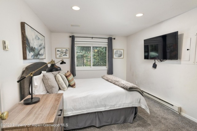MLS # 179356 – Woodbridge Condominiums, Snowmass Village, 35 Upper Woodbridge Road 4-AB, Snowmass Village, CO; Sold Price: $1.193M/$1,315 sq ft; furnished. Sold Date: 08/28/2023. Ask Price: $1.285M (Original Price: $1.35M and on the market since 05/24/2023). This is a 1973 built, 2 bedroom/2 bath, 907 sq ft condo. Tim’s comments: Rare opportunity in an excellent location at Woodbridge Condos. This recently renovated mountain chic condo offers two spacious bedrooms, two well-appointed bathrooms, hardwood floors, washer/dryer, and ample storage. Natural light fills the living area with views of Snowmass mountain and winter fireworks from the balcony. Easy access to slopes in winter (3-min walk or shuttle) and trails in summer. A new pool, hot tub, and gym will be completed in November ’23. Ideal for exclusive use or rental income. 2022 Taxes: $1,450; HOA Dues: $13,865. Under Contract Date: 07/30/2023; Sold Date: 08/28/2023. (Photos courtesy of Aspen Snowmass Sotheby’s International Realty)