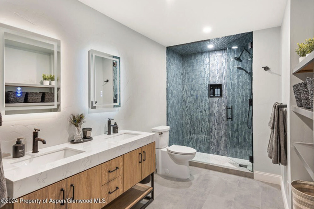 MLS # 190807 – West Aspen, West Aspen, 813 Bonita Drive, Aspen; Sold Price: $13.8M/$2,482 sq ft Furn. Ask Price: $14.4M (Original Price: $14.4M and on the market since 11/14/2025. Sold previously at $5.025M on 11/29/16.) This is a 2009 built, 5 bedroom 5 bath, 2 half-bath, 5,560 sq ft duplex with 2 car garage. Tim’s comments: Oversized five-bedroom 1/2 duplex directly on the Aspen Championship Golf Course with unobstructed Pyramid Peak views (towards Maroon Bells). The home features a top-floor great room, dining, kitchen, and primary suite, plus four guest suites, a large family room with wet bar, wine room, theater, and a generous covered porch with fireplace. 2024 Taxes: $26,052. Under Contract Date: 10/21/2025; Sold Date: 11/14/2025. (Photos courtesy of Douglas Elliman Real Estate)